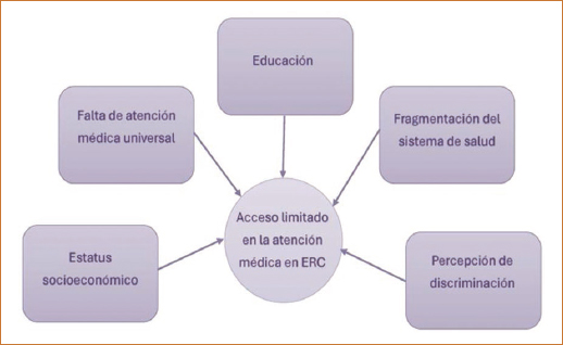 Figura 1. Factores conceptuales en las limitantes en el acceso en la atención médica. ERC: enfermedad renal crónica.