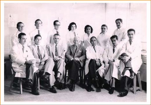 Figura 1. Homer W. Smith, en el centro, y sus primeros discípulos en México. Fotografía tomada durante su estancia en la Ciudad de México en 1959 (cortesía del Colegio de Nefrólogos de México).